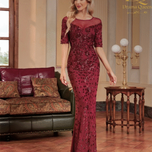 فستان عنابي مطرز