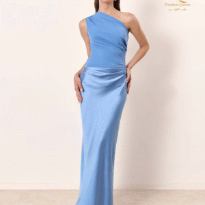 💎 فستان سهرة طويل بكشكش جانبي – أزرق سماوي