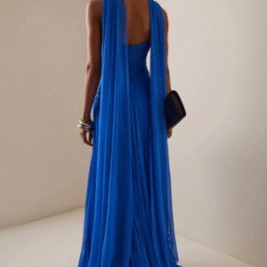 💙 فستان سهرة طويل شيفون – أزرق ملكي